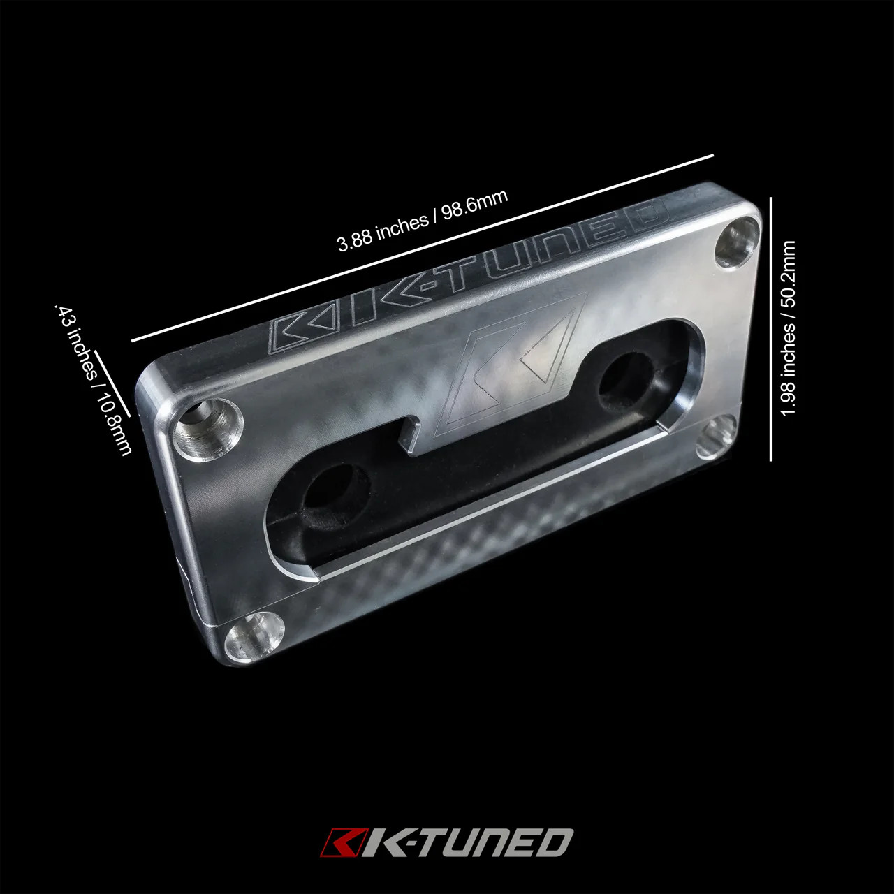 The K-Tuned Cable Grommet has a billet frame with a 7/16" thick rubber grommet in it. Simply drill 4 holes in the corners of the frame and fasten in place with the included hardware. Great for race cars and anywhere shifter cables are passed through a firewall.